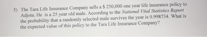 Problem 4 Suppose a life insurance company sells a 300,000 one-year term life insurance policy to a 19-year old female for $260. The probability that the female survives the year is 0.999497. ... Content Retrieval